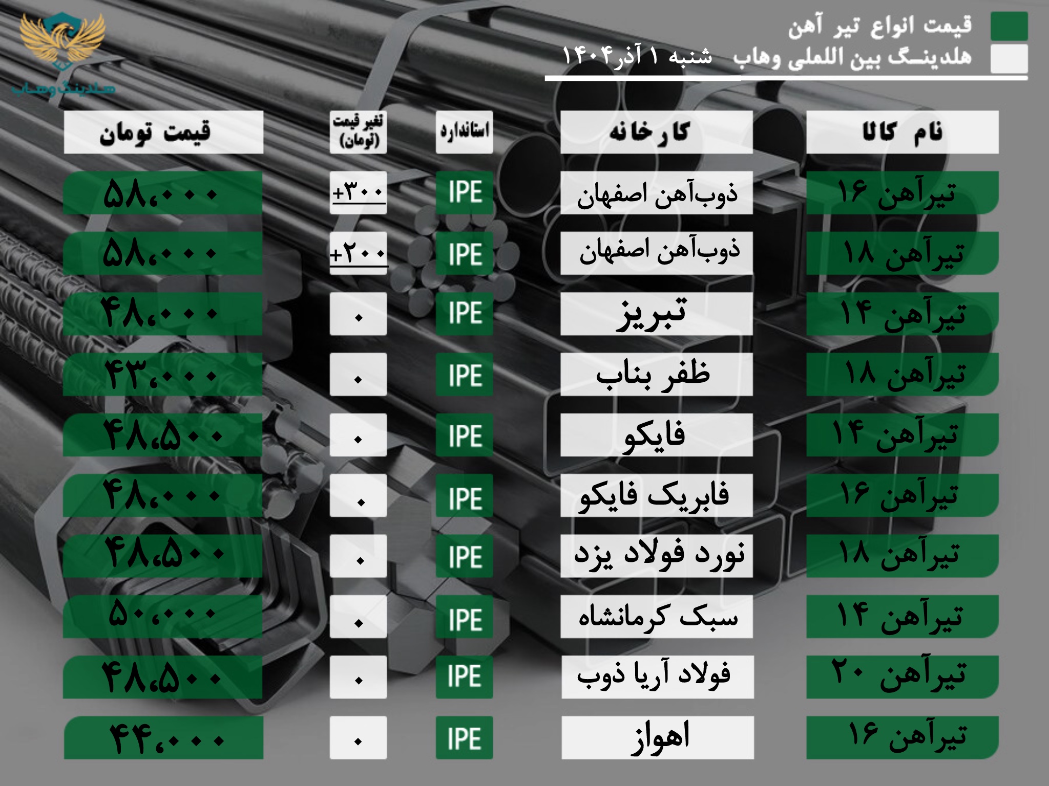 قیمت تیرآهن امروز ۱ آذر 1404 + جدول